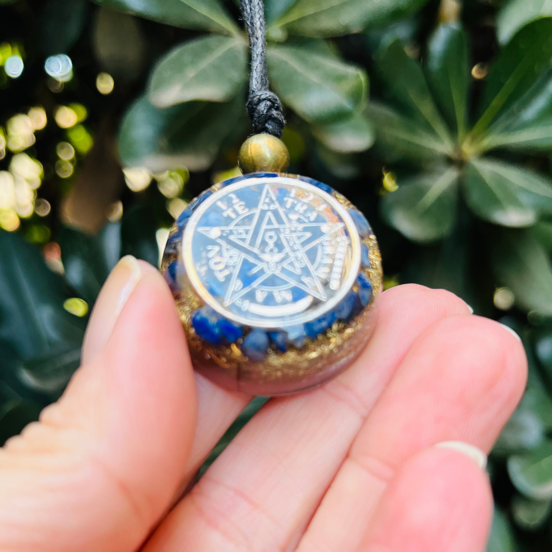 Este Collar Tetragramatón Orgon con Lapislázuli es una poderosa joya energética creada para quienes buscan protección espiritual profunda, claridad mental y conexión con su verdad interior.